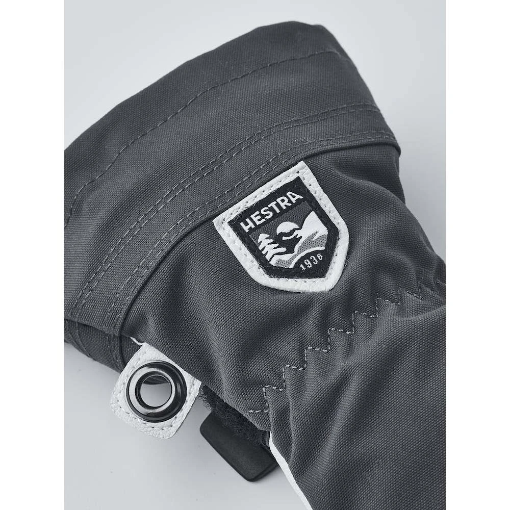 OUTER MATERIAL Upper section made of windproof, waterproof and breathable HESTRA Triton three layer polyamide fabric. Army Leather-goat leather.