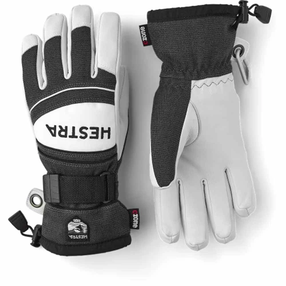Long and sturdy coach glove developed in close cooperation with the coaches of the Swedish and Norwegian national alpine teams. A five-finger work glove for long days outdoors in all kinds of weather, as well as withstanding heavy wear and tear from handling sticks and other equipment.The outer glove is made from durable goatskin combined with two different synthetic fabrics for flexibility and comfort. A CZone membrane stops wetness while also wicking away moisture and keeping your hand comfortably dry. The liner is made of polyester fleece with warm synthetic insulation.This model is robust with carefully thought-out details. The leather palm has an Oil tacky coating for extra grip around sticks and the like. The high cuff has a snowlock, and there�s a Velcro adjustment at the wrist. Hestra handcuffs (wrist strap) secure the glove if you take it off to work with just a liner on your hands. Also available in a three-finger model.