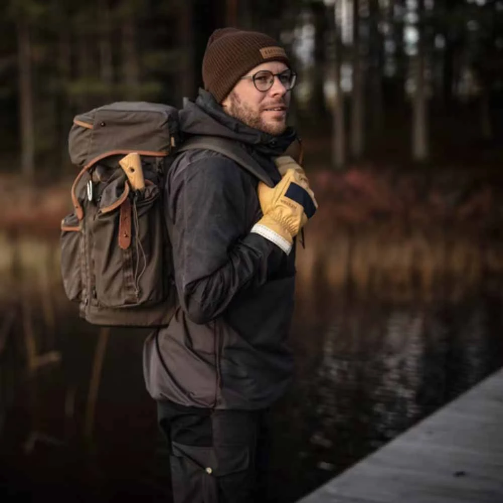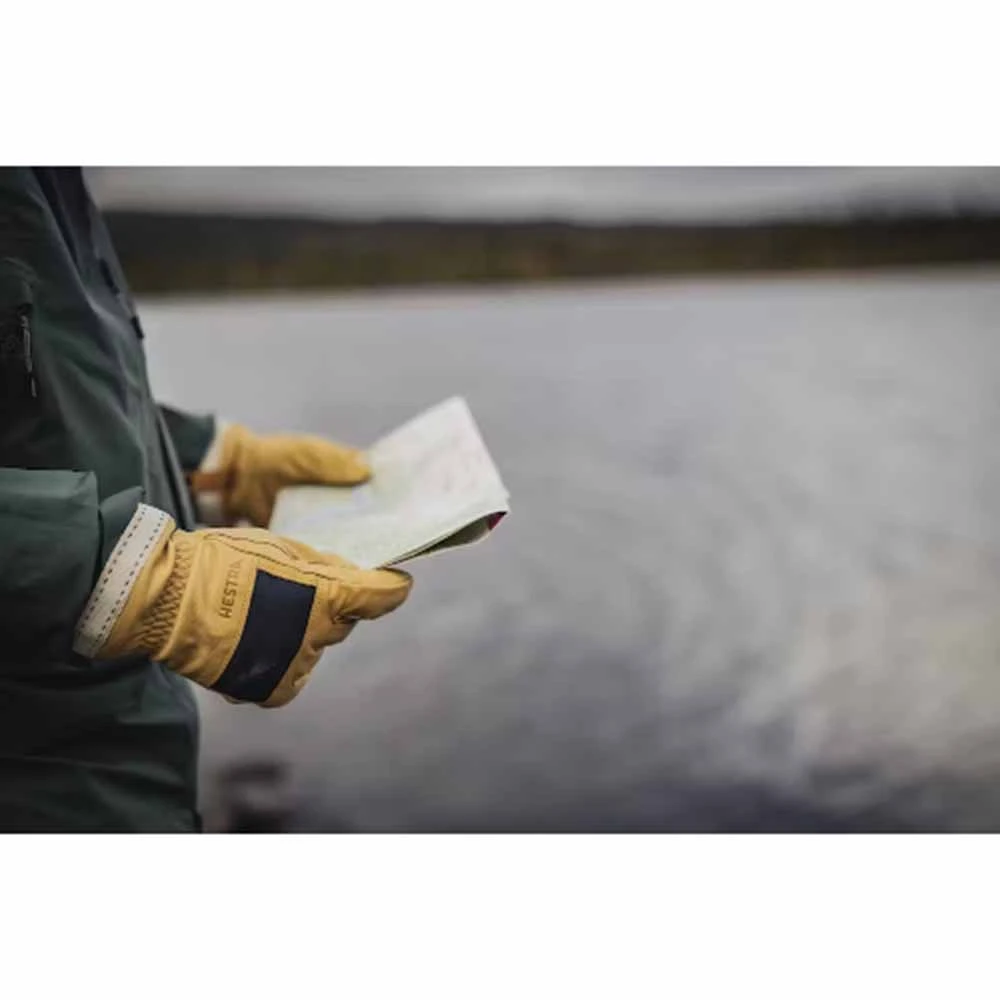 With its timeless style, Njord is a robust 5-finger leather glove in durable, natural materials. It has a removable, machine washable, knitted liner and the outer glove works on its own � or in combination with other Hestra liners � offering versatility in terms of functions in a single glove. Hardwearing goatskin provides protection from wind and weather, while the waxed cotton/polyester fabric on the backhand is wind and water-repellent too. It has a long cuff with decorative cotton edging. A practical, comfortable and attractive glove that will be by your side in the open air all year round for a long time to come, gaining a beautiful patina with use.