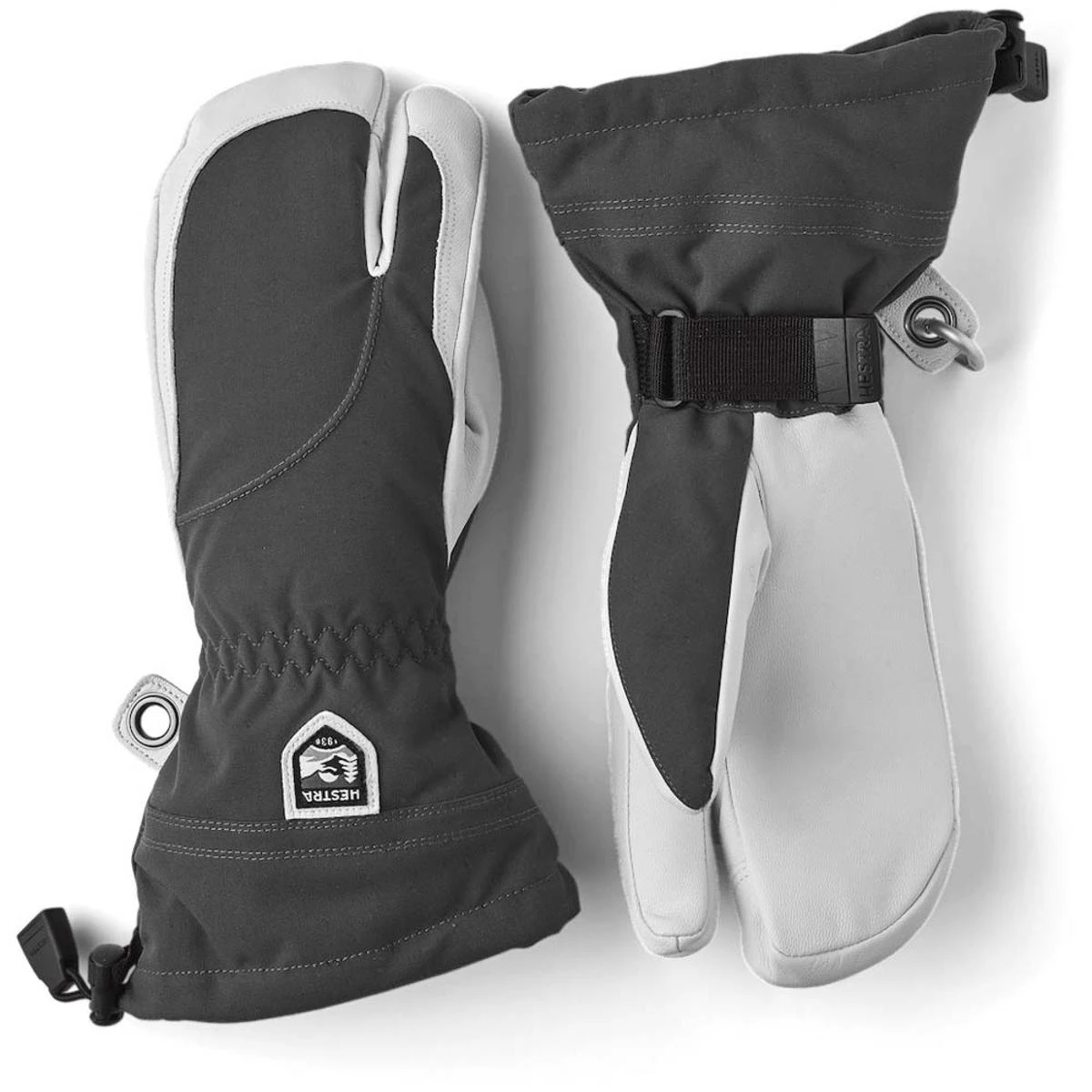 OUTER MATERIAL Upper section made of windproof, waterproof and breathable HESTRA Triton three-layer polyamide fabric. Cowhide palm.